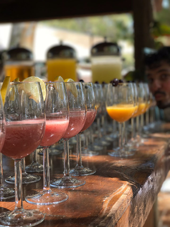 לאורך האירוע יגיש לכם הבר שייקים צבעוניים אשר נעשים פרונטלית לעיני האורחים, קוקטיילים יחודיים על בסיס פירות עם תוספות ואפשרות לבר בריאות המשלב שייקים על בסיס ירקות ופירות אשר מוסיף מימד חדש של טעמים.